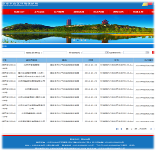 推进环境保护信息公开。一是印发《丰台区空气重污染应急预案(2016年修订)》的通知(丰政发〔2016〕21号);二是公开建设项目审批评价信息343件(其中环境影响报告书10项、环境影响报告表109项、环境影响登记表224项);公开建设项目验收信息132件;三是公开辐射类建设项目验收信息25件;四是公开行政执法类信息280条。