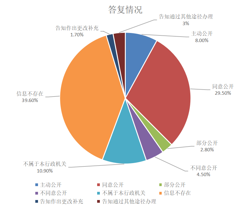 全区申请总数为1580件。其中,当面申请759件,占总数的48%;通过传真申请8件,占总数的0.5%;通过互联网申请328件,占总数的20.8%;以信函形式申请485件,占总数的30.7%。