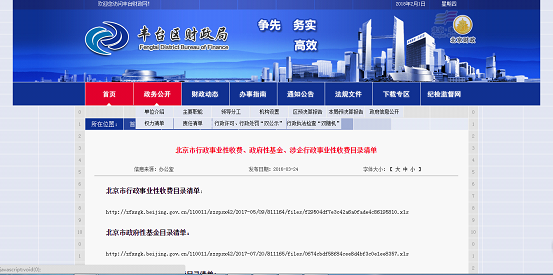 可通过“丰台区财政局网站—蓝鲸直播-最新流出蓝鲸直播发布页—公告—通知公告—北京市行政事业性收费、政府性基金、涉企行政事业性收费目录清单”进行查询。