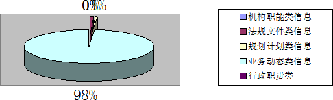 我街道2010年通过信息公开专栏主动公开政府信息342条。其中,机构职能类信息0条,占总体的比例为0%;法规文件类信息3条,占总体的比例为0.88%;规划计划类信息2条,占总体的比例为0.58%;行政职责类信息0条,占总体的比例为0.00%;业务动态类信息337条,占总体的比例为98.54%。