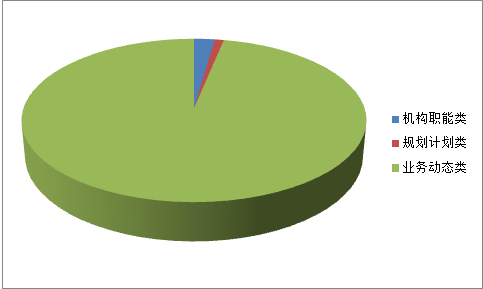 2015年,通过云岗街道政务网等方式主动公开政府信息404条,全文电子化率为100%。其中,机构职能类信息9条,占总体比例2.2%;规划计划类信息4条,占总体的比例为1.0%;业务动态类信息391条,占总体的比例为96.8%。