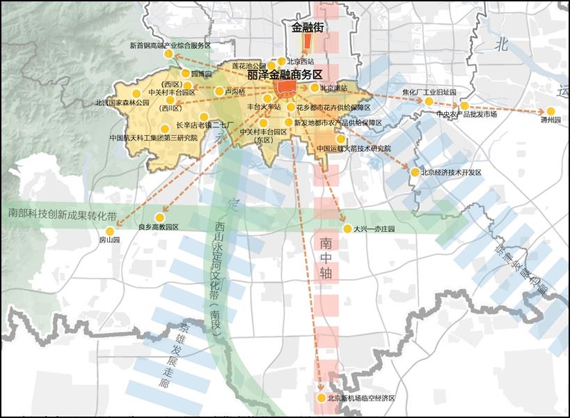 建设新兴金融产业集聚区、首都金融改革试验区,积极承接首都功能核心区功能疏解。牢牢把握“两区”建设机遇,坚持“金融+科技”,大力发展新兴金融、高科技及专业服务业,建设金融科技创新示范区。提供便捷、舒适、高品质的配套设施和公共环境,积极承接金融街外溢功能出得来、落得下、稳得住,打造“第二金融街”,并助力北京打造全球新兴金融高地。