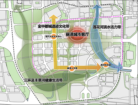 建设金中都城遗址公园,构建历史与现代融合交织、文化生态与现代金融交相辉映的独特风貌。结合中国戏曲学院戏曲文化优势,塑造独具特色的“中都溯源”文化景观,打造“丽泽人文汇”重要空间节点。推进现代文化艺术中心建设,室内外多种形式展示金中都城历史文化成就,形成丽泽文化属性最集中的体验地,以文化软实力提升丽泽商务区综合竞争力。
