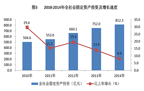 固定资产投资:全年完成全社会固定资产投资812.3亿元,比上年增长8%;其中基础设施投资249.4亿元,增长26.2%。