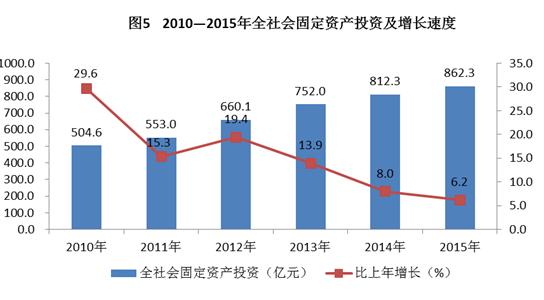 “十二五”时期,全区累计完成全社会固定资产投资3639.6亿元,是“十一五”时期的2倍,年均增长14.2%,低于“十一五”时期平均增速1.1个百分点。其中,累计完成房地产开发投资2071.9亿元,是“十一五”时期的2.2倍,年均增长9.1%,高于“十一五”时期平均增速1.8个百分点。