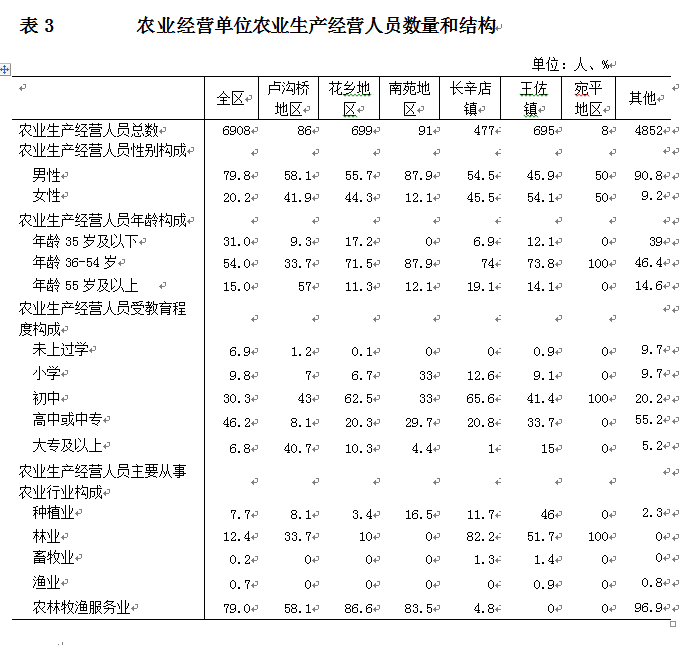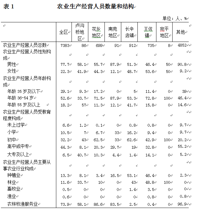 丰台区第三次全国农业普查对全国农业生产经营人员情况进行了调查。现将主要结果公布如下: