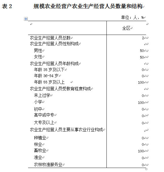 二、规模农业经营户农业生产经营人员数量和结构