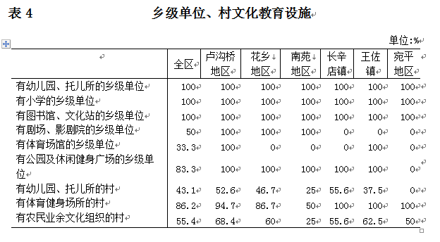 43.1%的村有幼儿园、托儿所,86.2%的村有体育健身场所,55.4%的村有农民业余文化组织。