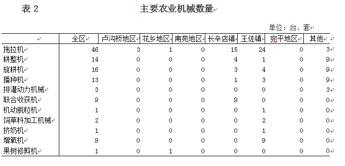 丰台区第三次全国农业普查对全区农业经营主体、农业机械和设施进行了调查。现将主要结果公布如下: