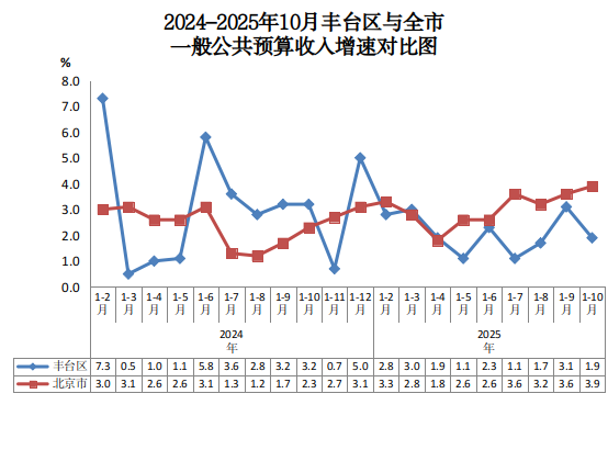 2024-2025年10月丰台区与全市一般公共预算收入增速对比图