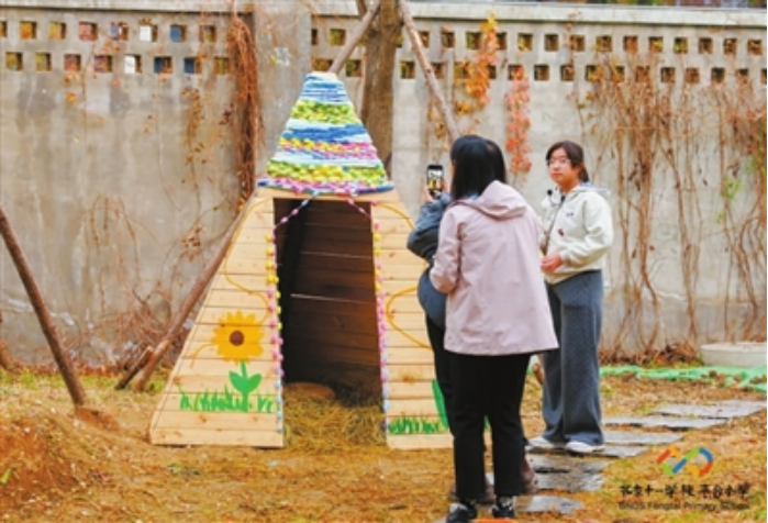 “我做了张网子去捞太阳,结果捞到了月亮,更冷了。”“黑板报的标题描了金边,粉笔灰落尽发梢。”“马路切开了城,一边是烟火,一边是风。”……教育新域新质生态的强大生命力从校园内延伸至校园外,北京十一学校丰台小学外“马路诗歌节”的创意实践正在教育、文学、艺术的沃土中茁壮生长。马路两侧的墙面和地上铺就着孩子们天真的思考与遐想,记录着与文学名家的时空对话,周边百米街巷成为一座永不打烊的诗歌博物馆。“我们创作诗歌的灵感来源于生活,看到每天上下学路上印有我们的创作感觉很自豪,也给我很大的动力继续创作。这种形式也美化了环境,让我们的街区变得更有艺术氛围了。”五年级一班的李心远说道。