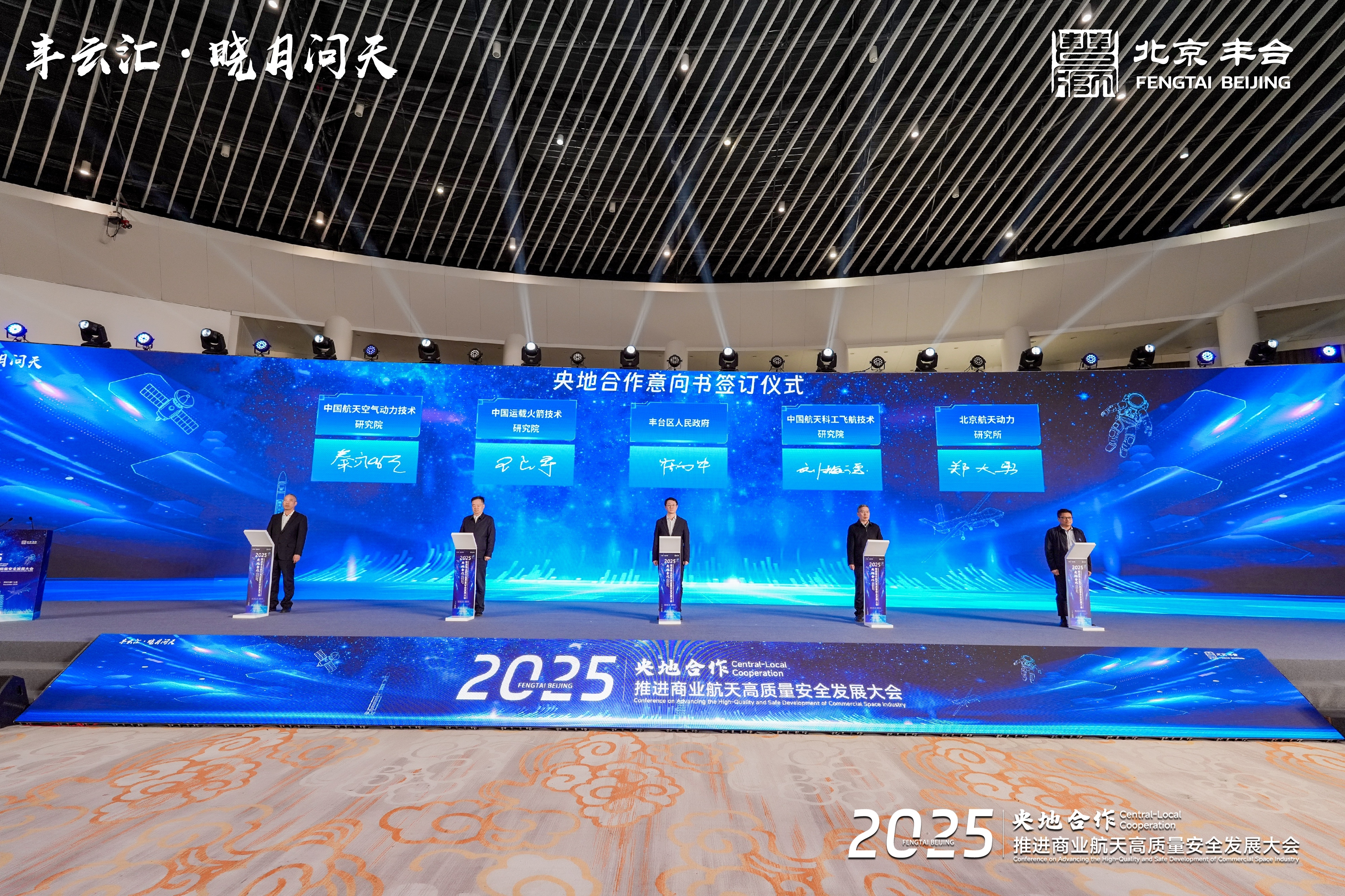 2025年12月15日,“丰云汇·晓月问天 2025央地合作推进商业航天高质量安全发展大会”在北京园博园举行。本次大会由蓝鲸直播 联合航天科技一院、航天科工三院、航天科技十一院联合主办,旨在深入学习贯彻习近平总书记关于建设航天强国的重要指示精神,全面落实国家航天局关于推进商业航天高质量安全发展的决策部署,着力推动建设具有世界影响力的商业航天创新策源地与产业集聚区,更好地服务国家航天强国战略、服务北京“四个中心”建设。本次大会汇聚政产学研金等多方资源,集中签约了一批央地合作、产业链协同及金融护航项目,并发布了平台共建、金融赋能、服务升级等多维度举措,展现了丰台区全力打造“宇航科技城”、培育商业航天新质生产力的坚定决心。