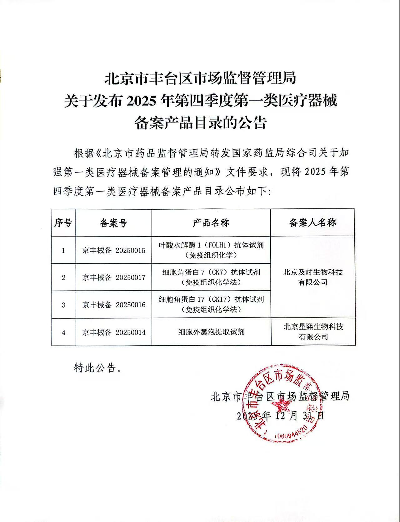 关于发布2025年第四季度第一类医疗器械备案产品目录的公告